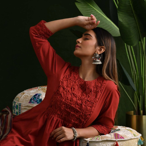 Stylish yet comfortable. The stitching is neat, and the color is exactly as shown in the pictures. It looks elegant for both casual outings and small functions