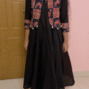 Black Shoulder Anarkali Set with Embroidered Camel Jacket