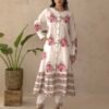 This outfit also includes matching cotton pants, completing the ensemble with effortless grace. Perfect for festivals, family functions, or casual outings, this Anarkali set blends comfort, tradition, and contemporary style in one stunning look.
