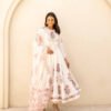 This set comes with matching silk pants for a complete, graceful look and is paired with a soft organza dupatta and delicate lace detailing on the edges — adding an ethereal finish.