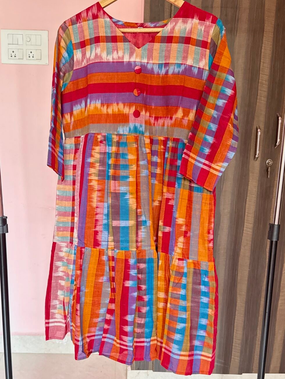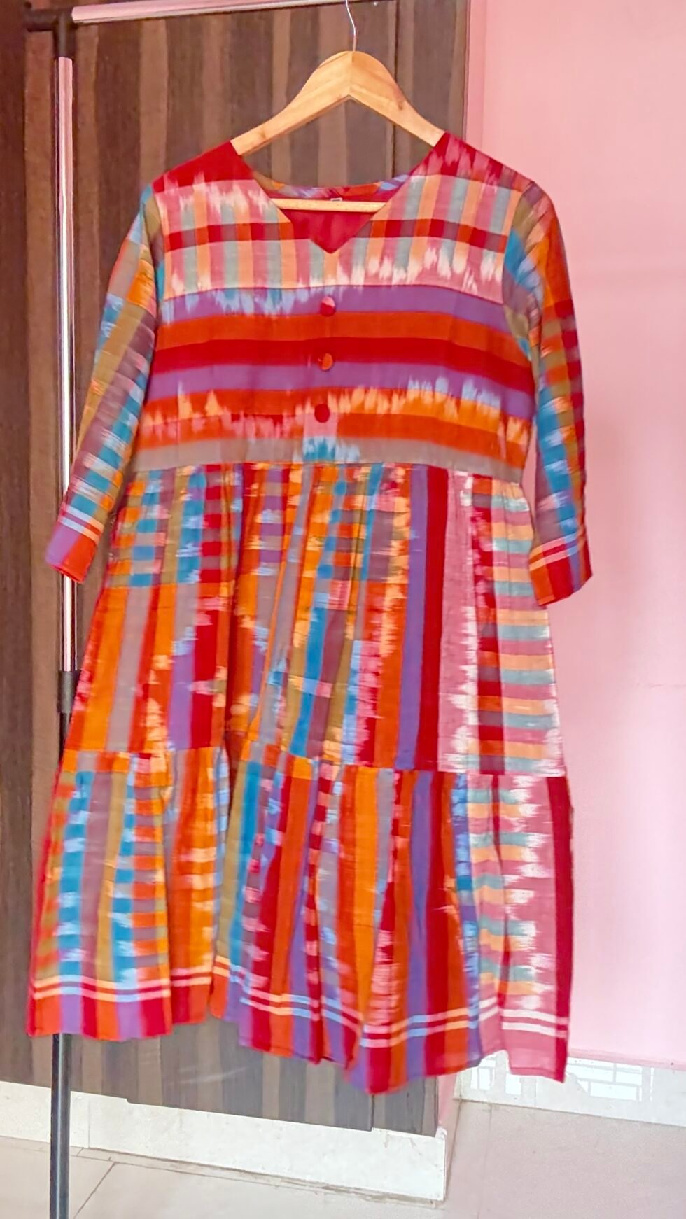 Sambalpuri Gamcha Frock – Elegance with Button Detailing