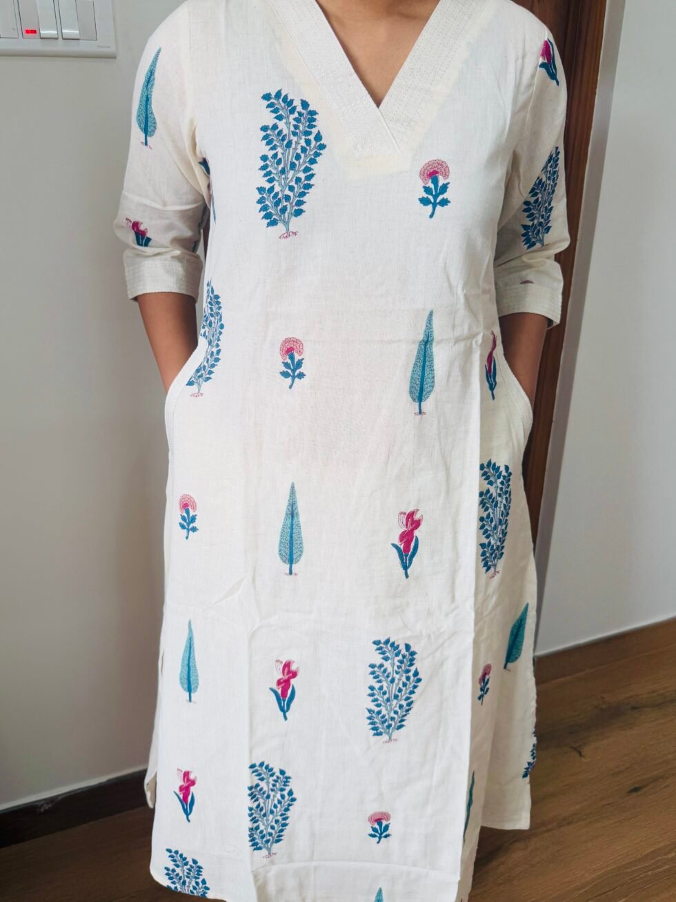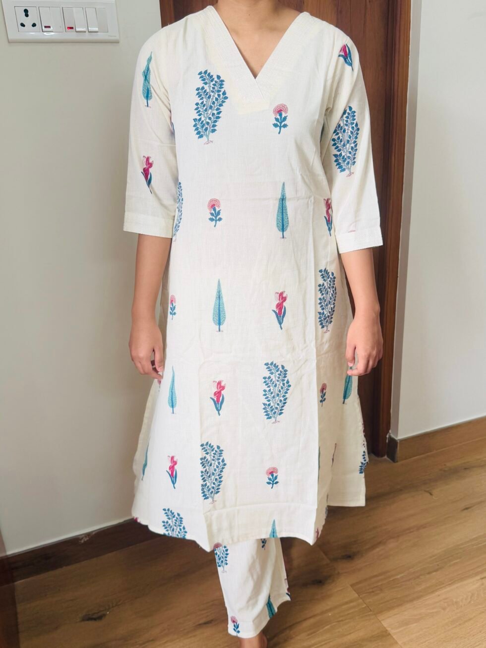 - 🧵 Design: A-line kurta with side slits for ease and flow