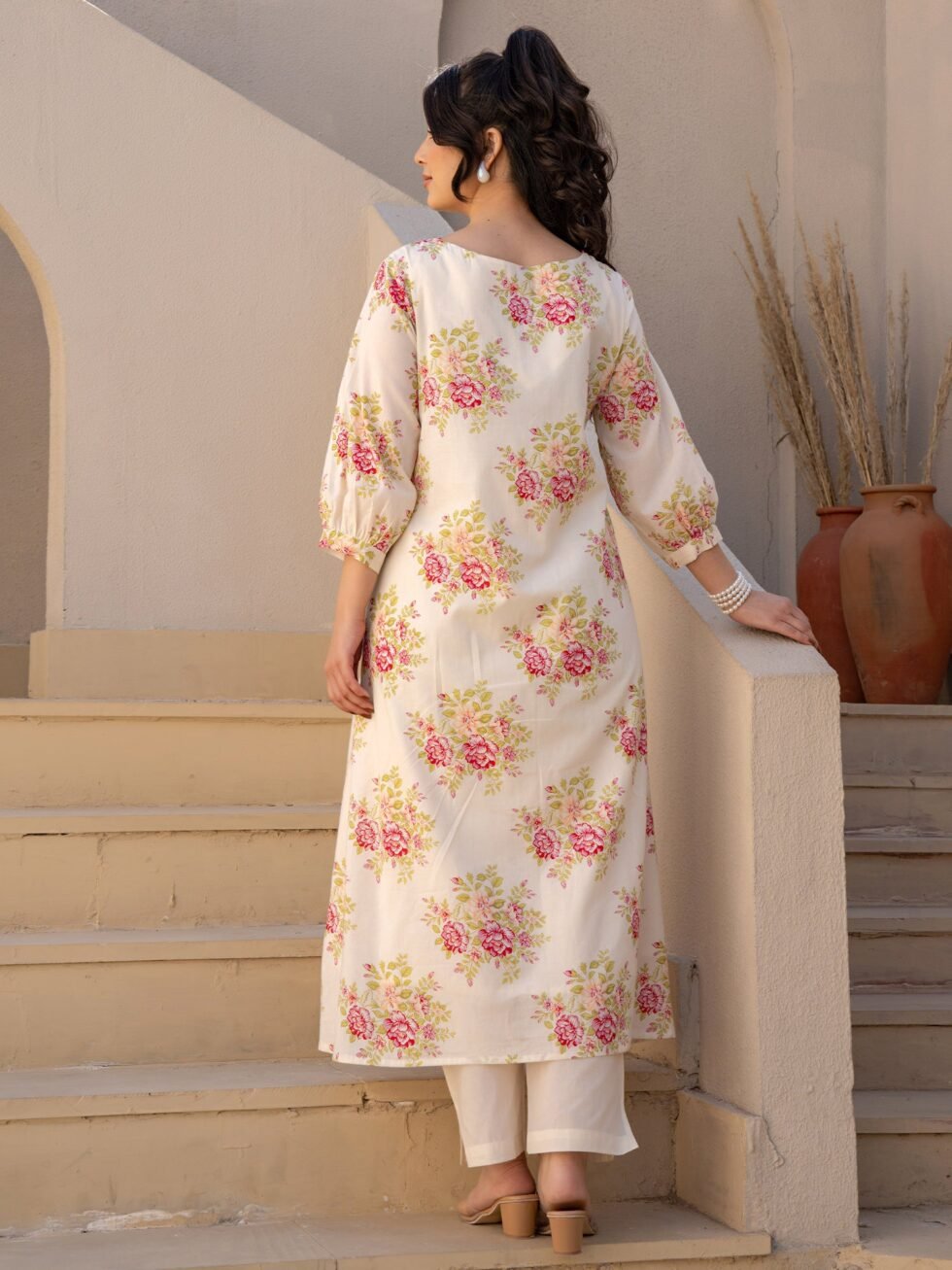 White Mal Cotton Co-ord Set with Pink Floral Digital Print